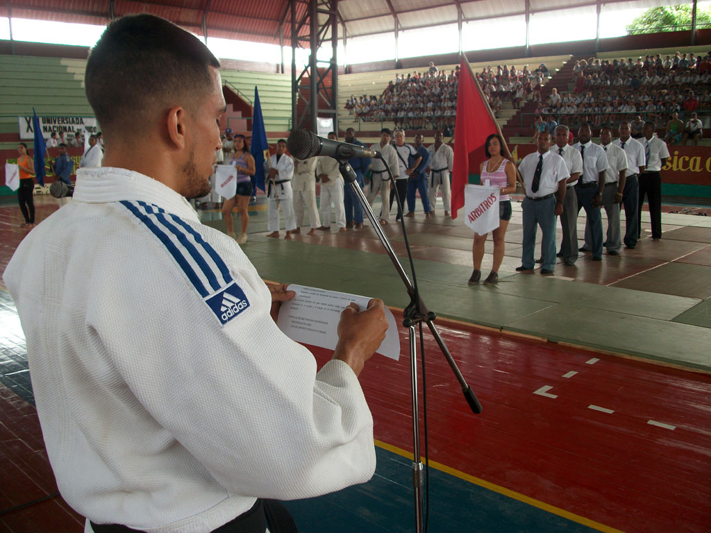 Como justo reconocimiento a su destacada labor como promotores del judo en Cuba fueron estimulados Leonardo Aguirre López (6to Dan), Rodolfo Fleitas Céspedes (5to Dan) y Julio Silvio Jiménez (8vo Dan). Las palabras de bienvenida y apertura oficial de la Universiada estuvieron a cargo del Dr.C. Reynaldo Velázquez Zaldívar, Rector de la Universidad sede.