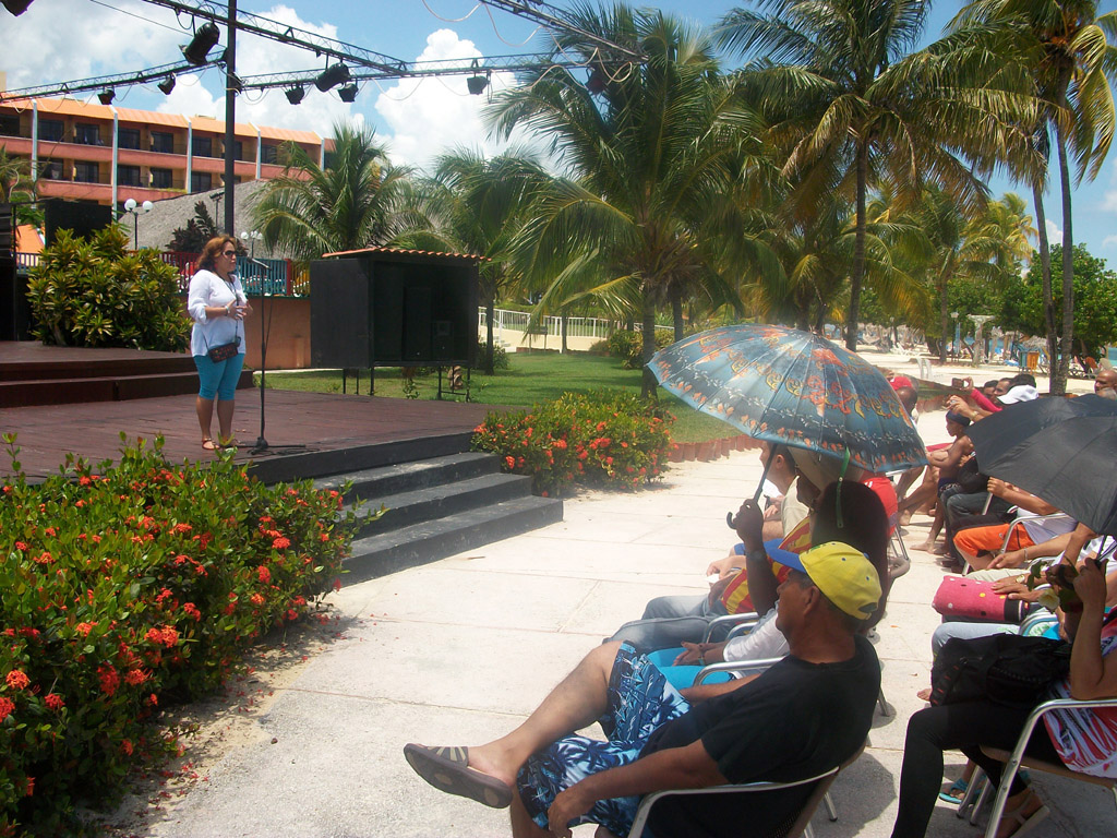 La Directora de Ciencia y Técnica de la Universidad de Holguín, interviene en la clausura del VII Taller Internacional “Músculos del cuerpo, músculos del alma”. Desarrollado en Guardalavaca. UHO FOTO/Luis Ernesto Ruiz Martínez.