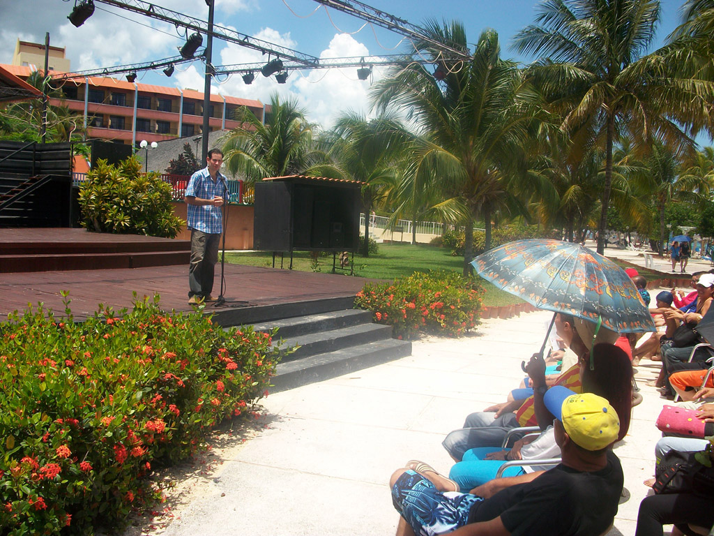 El Dr.C Darvin Ramírez Guerra, vicedecano de investigaciones de la Facultad de Cultura Física, resume lo acontecido en el VII Taller Internacional “Músculos del cuerpo, músculos del alma”. Desarrollado en Guardalavaca. UHO FOTO/Luis Ernesto Ruiz Martínez.