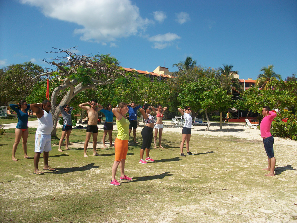 Hasta bailoterapia se practicó en la Cruzada Olímpica Martiana del VII Taller Internacional “Músculos del cuerpo, músculos del alma”. Desarrollado en Guardalavaca. UHO FOTO/Luis Ernesto Ruiz Martínez.
