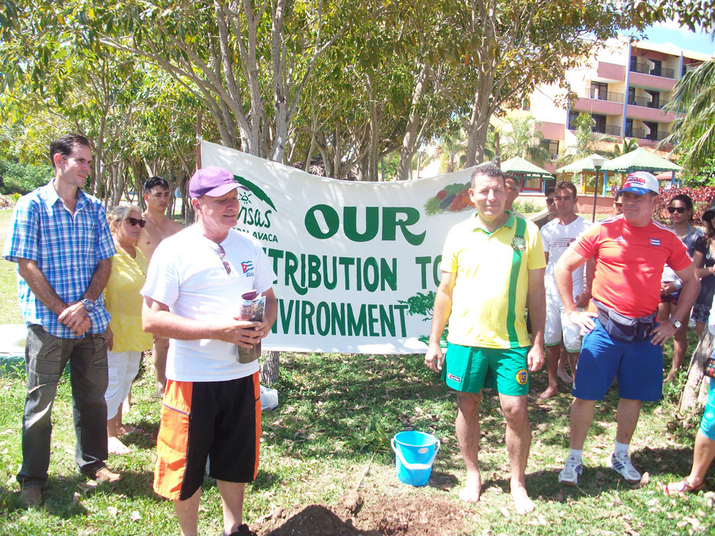 Momentos después de sembrar el cedro en la Cruzada Olímpica Martiana del VII Taller Internacional "Músculos del cuerpo, músculos del alma". Desarrollado en Guardalavaca. UHO FOTO/Luis Ernesto Ruiz Martínez.