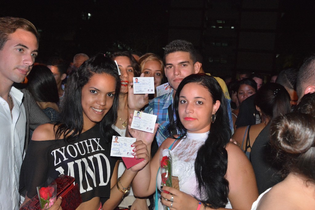 Estudiantes muestran el carné de la FEU que recibieron en Holguín. Acto de ingreso a la FEU de estudiantes de primer año de la Universidad de Holguín. Efectuado el 29 de septiembre de 2016 en la Sede Oscar Lucero Moya. UHO FOTO/Luis Ernesto Ruiz Martínez.