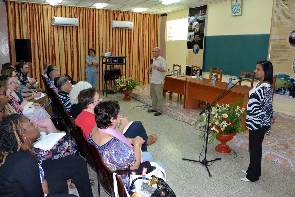 En el encuentro central el Dr. C. Reynaldo Velázquez Zaldívar, Rector de la Universidad de Holguín, expuso en su intervención logros de nuestra institución. Entre los visitantes intervinieron Elsa Webber y Mark Barry Ginsburg.
