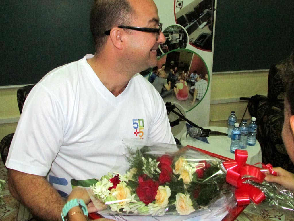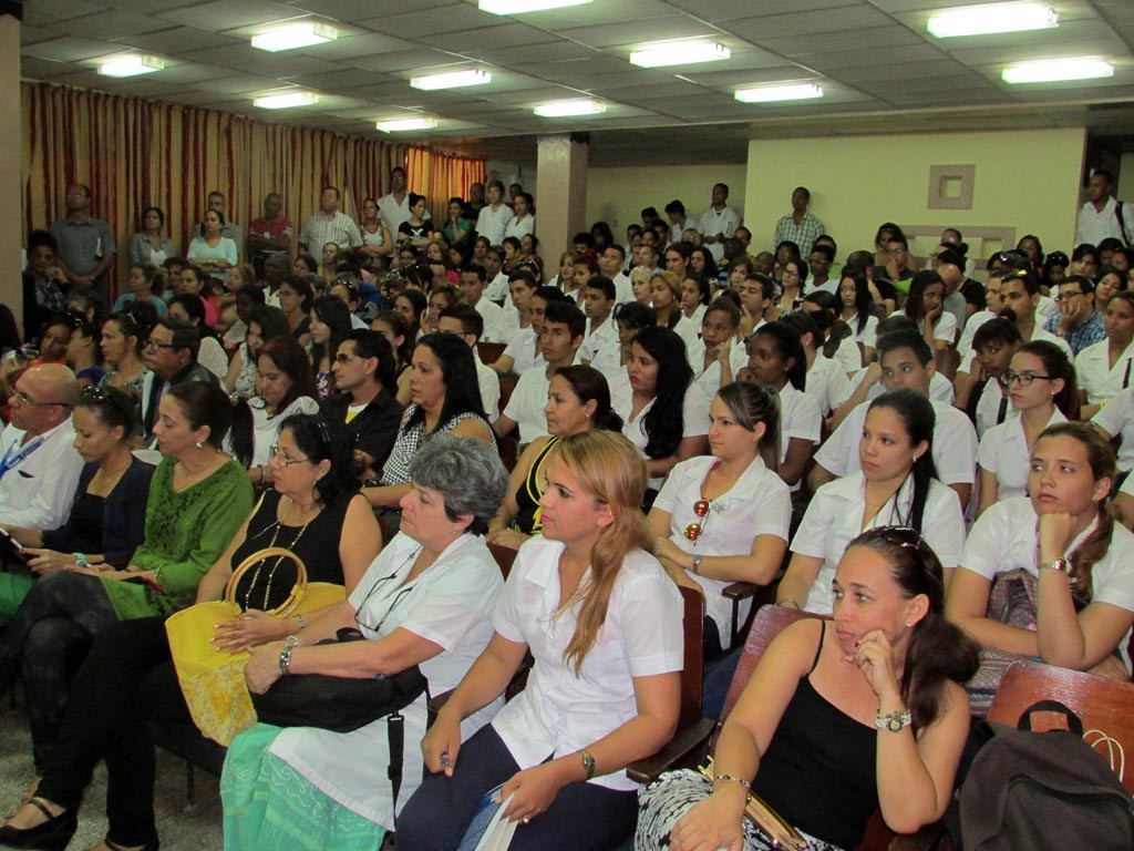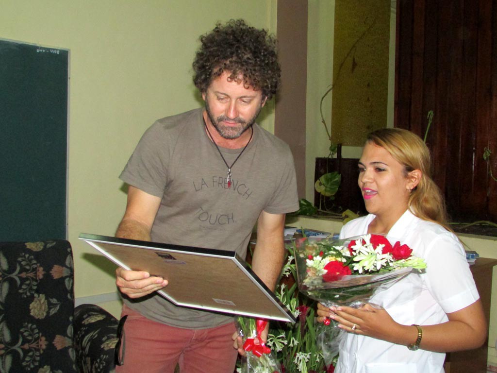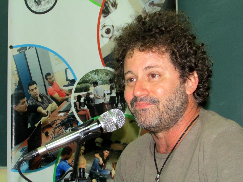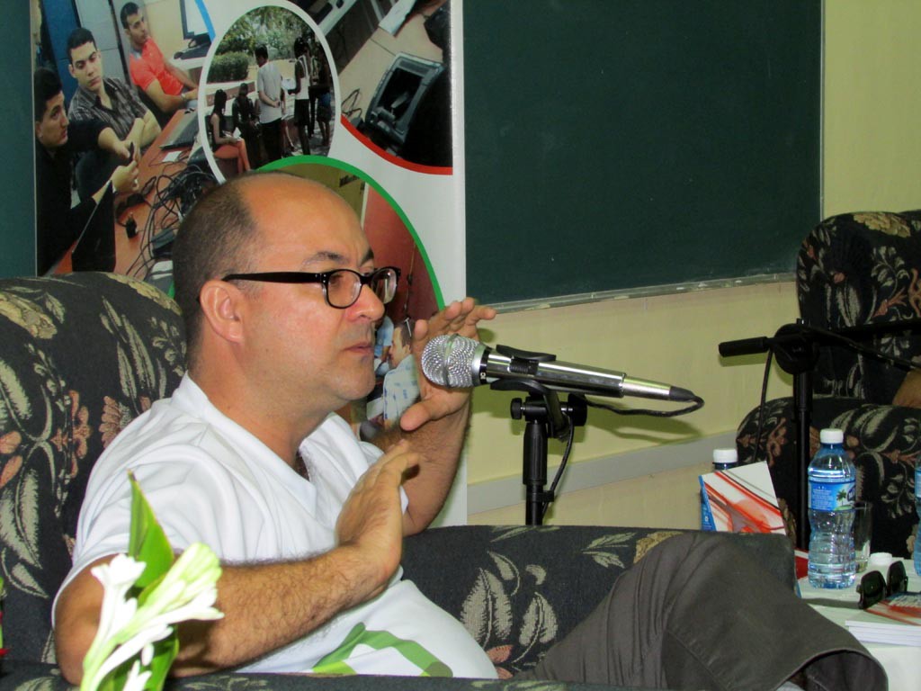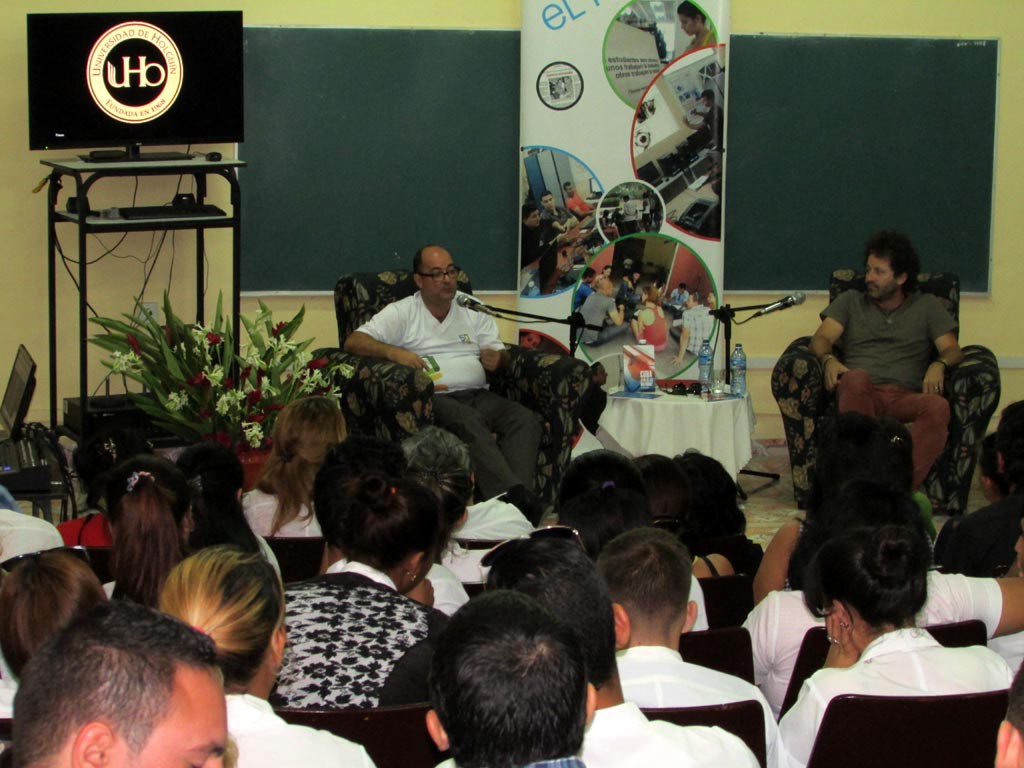 El salón de conferencias estaba repleto. Había muchas batas blancas, profesores y los dirigentes de la Feu. Por suerte, tenía reservado un puesto en la segunda fila. Sobre las 10 de la mañana entró Limia, y detrás venía él, con sus rizos rebeldes que crecen desde “Hello, Hemingway”. Zapatos aceituna, igual al pulóver, una botella de agua en la mano, aire afrancesado con esencias tropicales. Raúl Paz fue el encargado de presentar el título “Cuba: ¿Fin de la historia?”.