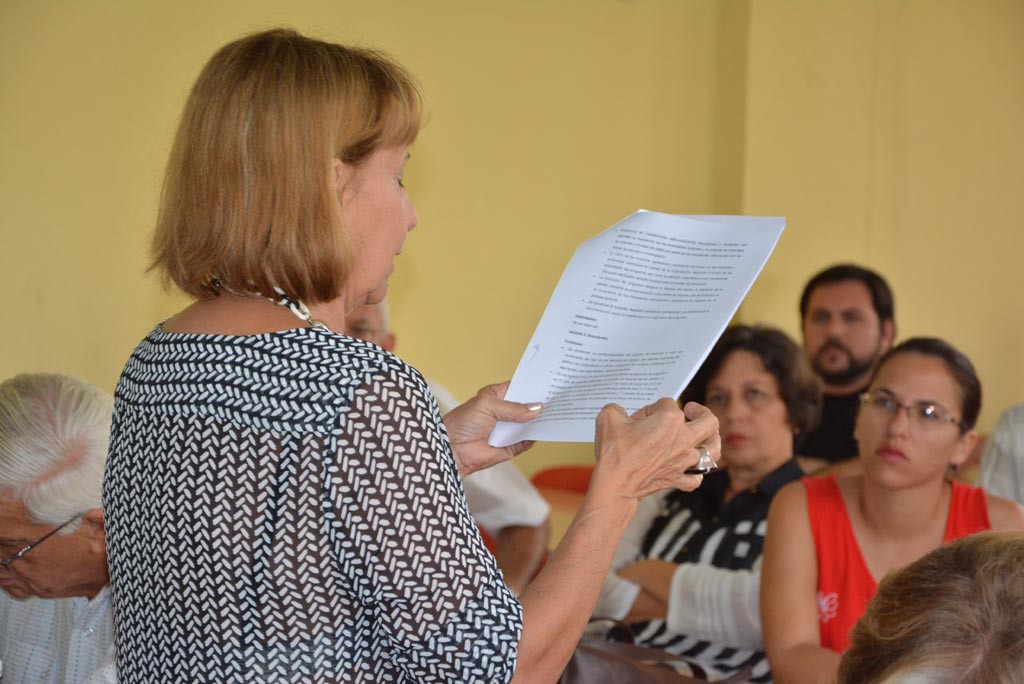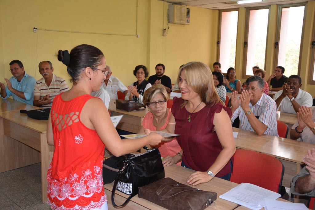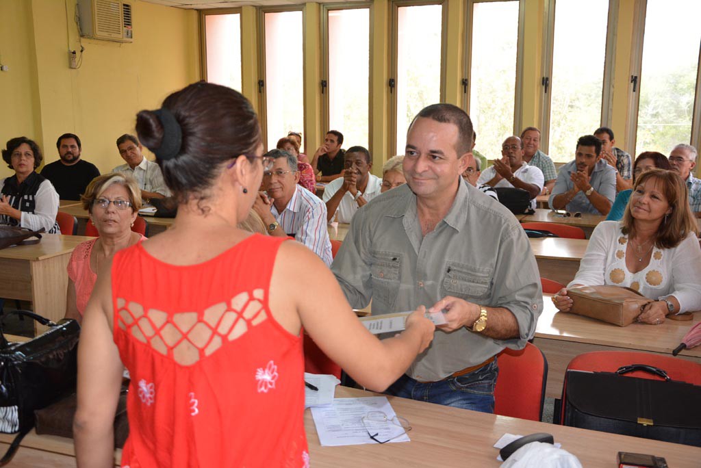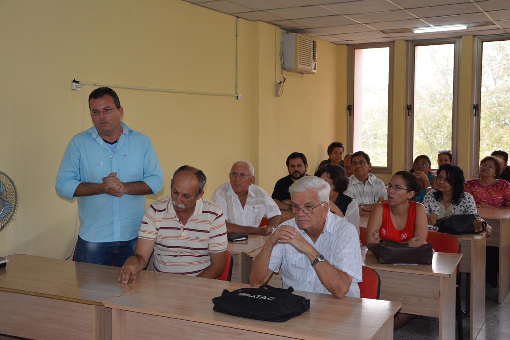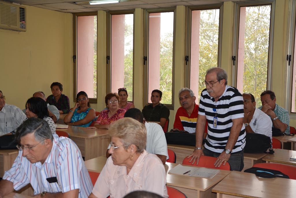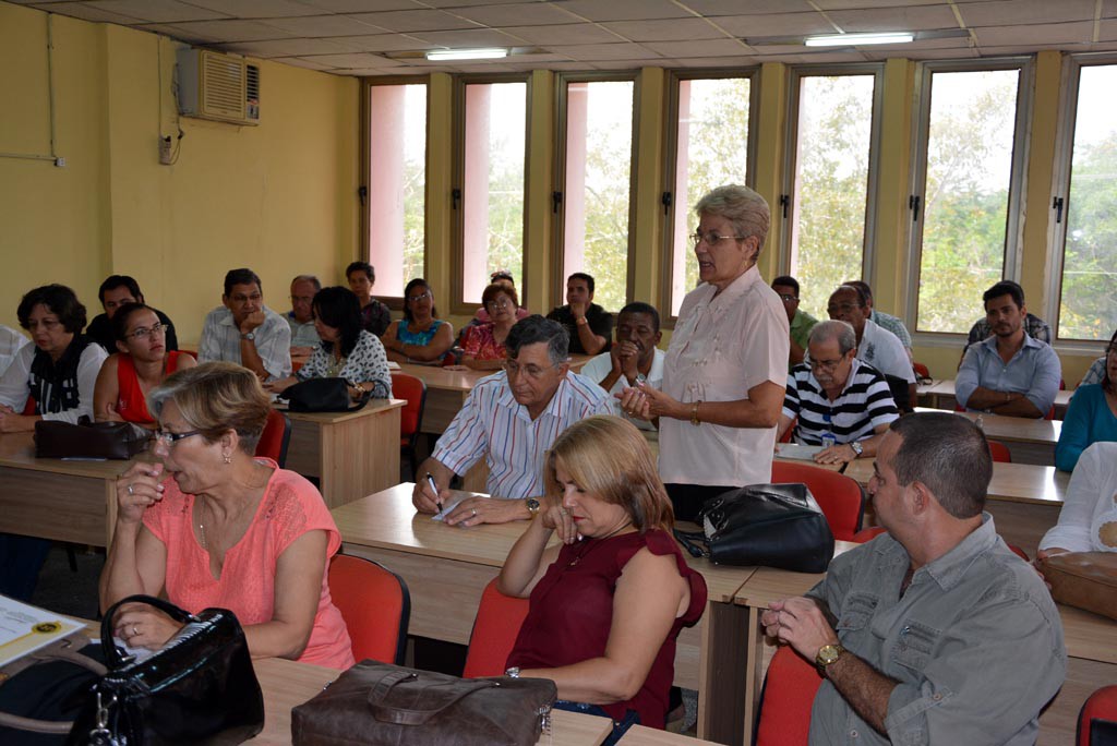 En un clima respetuoso y de camaradería, los miembros del claustro y algunos estudiantes, escucharon atentamente a la Dr. C. Ileana Capote Padrón, profesora del Instituto Superior de Relaciones Internacionales y representante del Comité Técnico Evaluador, que leyó el Informe del proceso de evaluación a cada una de las variables.