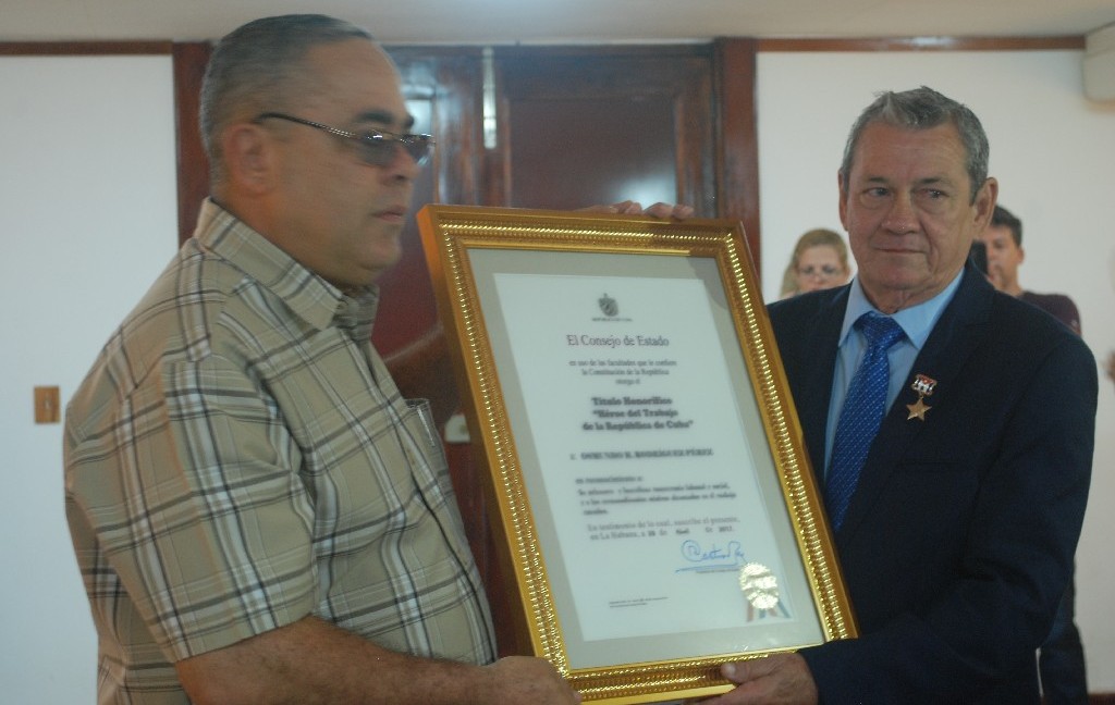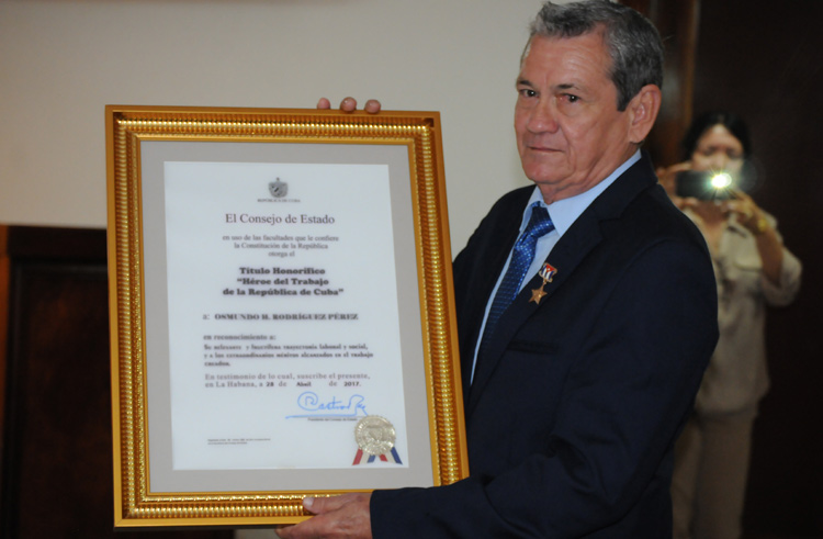 En el acto efectuado el 31 de enero en el Salón de Entrega del Hacha del Complejo Monumentario Plaza de la Revolución Mayor General Calixto García Íñiguez, el Miembro del Comité Central y Primer Secretario del Comité Provincial del Partido, Luis Antonio Torres Iríbar impuso el título de Héroe del Trabajo de la República de Cuba, al Dr. C. Osmundo Héctor Rodríguez Pérez, Profesor de Mérito de la Universidad de Holguín.