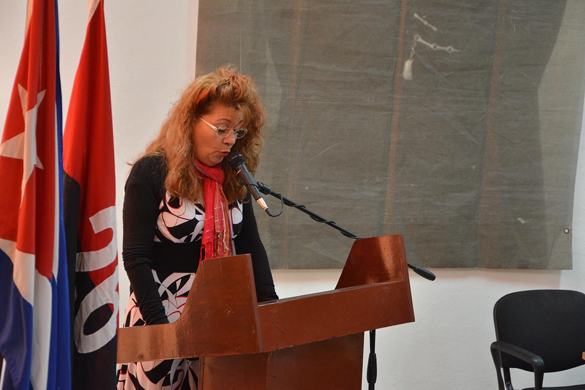 La Dr. C. Isabel Cristina Torres Torres ofrece detalles sobre la institución en la apertura del proceso de evaluación externa de la carrera Licenciatura en Matemática, efectuada en la sede Oscar Lucero Moya, el 19 de marzo de 2018. UHO FOTO/Luis Ernesto Ruiz Martínez.