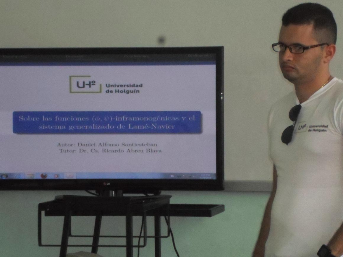 En la Comisión 2, la Universidad de Holguín estuvo presente con las ponencias Sobre las funciones (_; )-inframonogénicas y el sistema de Lamé-Navier generalizado; y Sobre las funciones (_; )-bimonogénicas. Algunas aplicaciones, investigaciones de estudiantes de 4to año de la carrera de Matemática que forman parte de sus Trabajos de Diploma, y que tienen aplicación en la Teoría de la Elasticidad en Física, en la descripción de imágenes por radar, en la Teoría de Fluido y, dentro del campo de la matemática pura, se enmarca en los estudios del Grupo del Análisis Complejo y del Análisis de Clifford, según explicaron sus respectivos autores Daniel Alfonso Santiesteban y José Luis Serrano Ricardo.