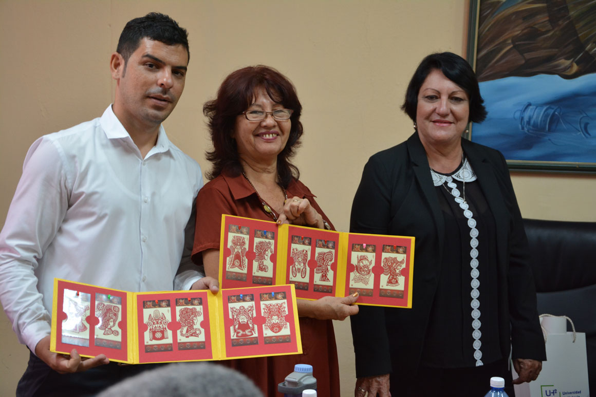 Intercambio de presentes entre autoridades de la Universidad Jiaotong de Lanzhou y la Universidad de Holguín. Sede Celia Sánchez Manduley, 12 de octubre de 2018. UHO FOTO/Luis Ernesto Ruiz Martínez.