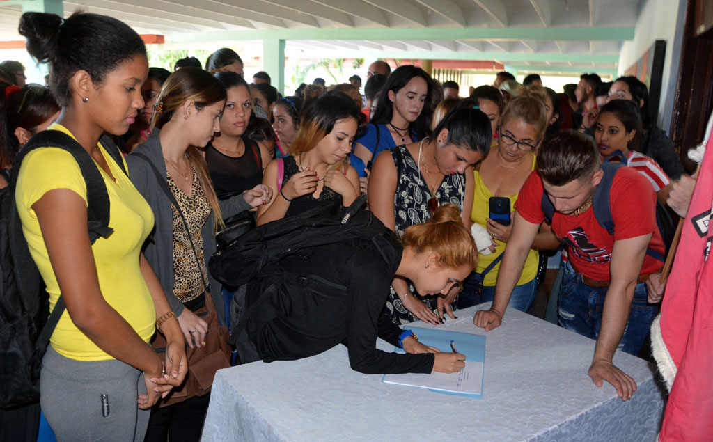 Como es tradicional, cada año en esta fecha se incorporan al Contingente los estudiantes de primer año de las carreras pedagógicas de todo el país que, en el caso de la Universidad de Holguín, firmaron el libro Yo soy el Maestro.
