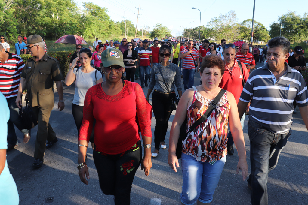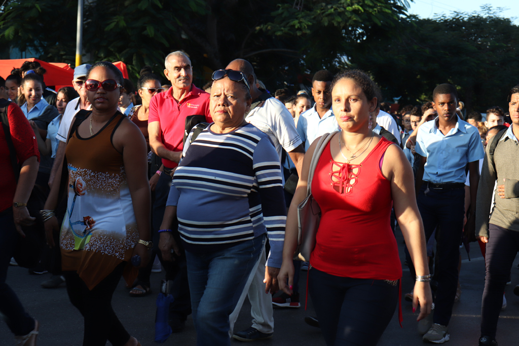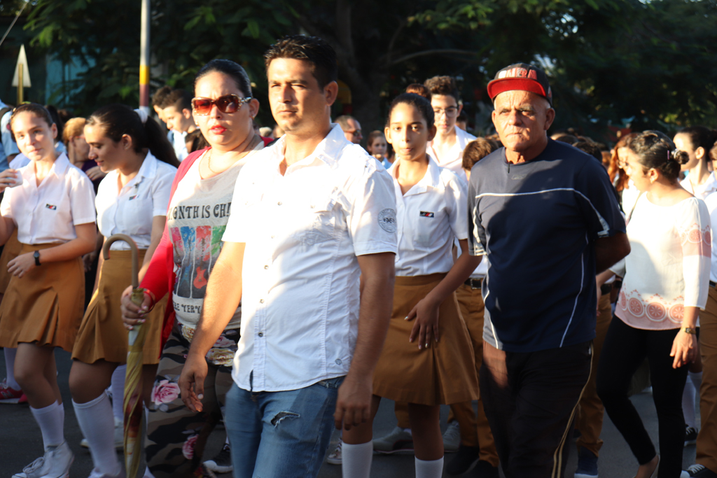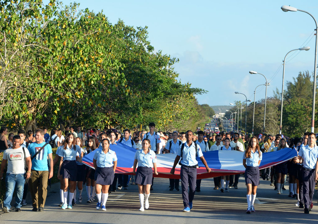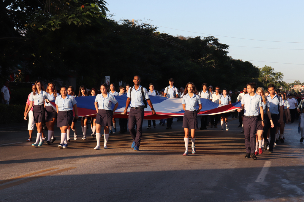 La bandera cubana en manos de jóvenes estudiantes, encabezó el recorrido. Allí estaban, detrás de ella, militares, universitarios, médicos, profesionales, trabajadores, gente de pueblo que cada año se suma a la marcha con la historia.