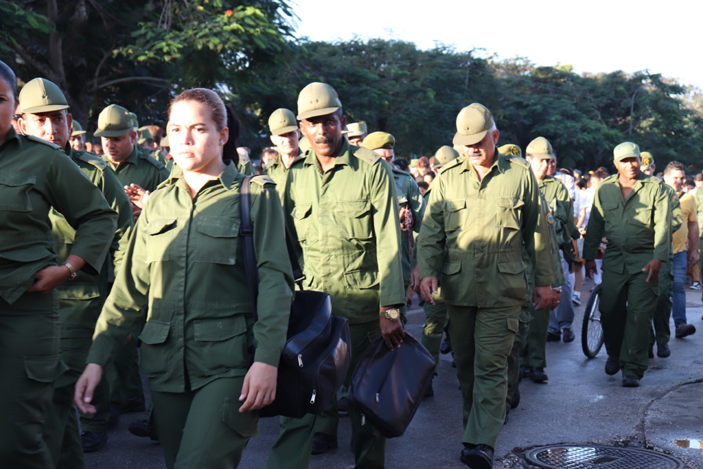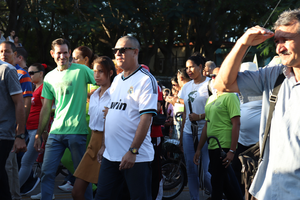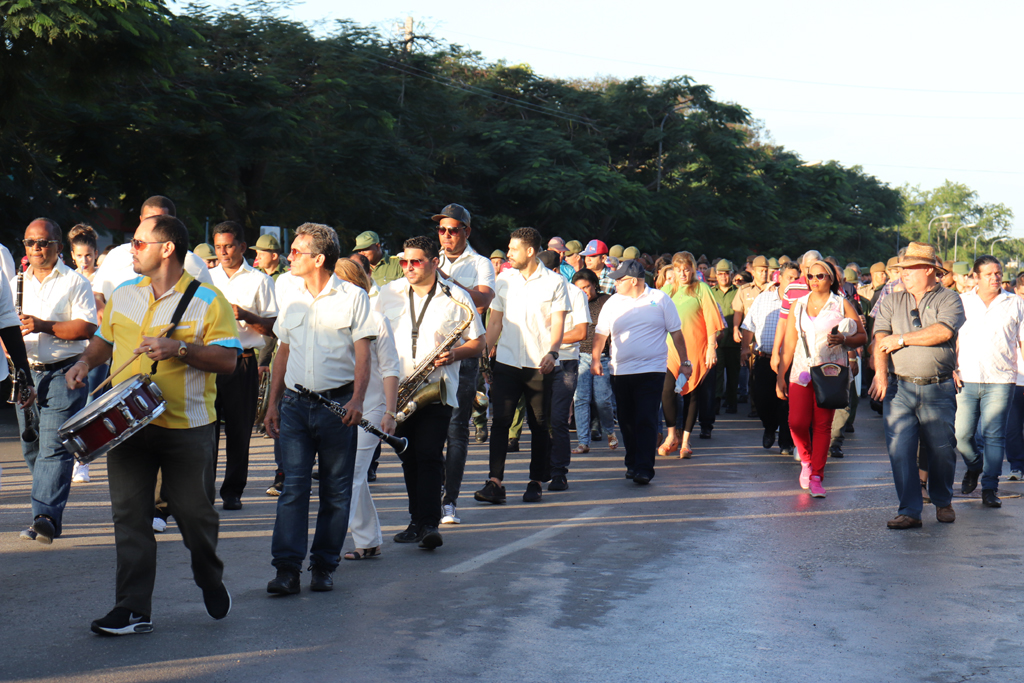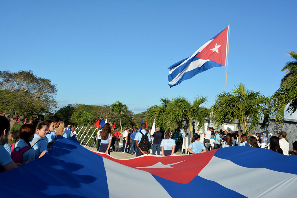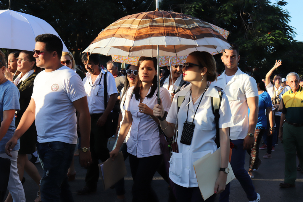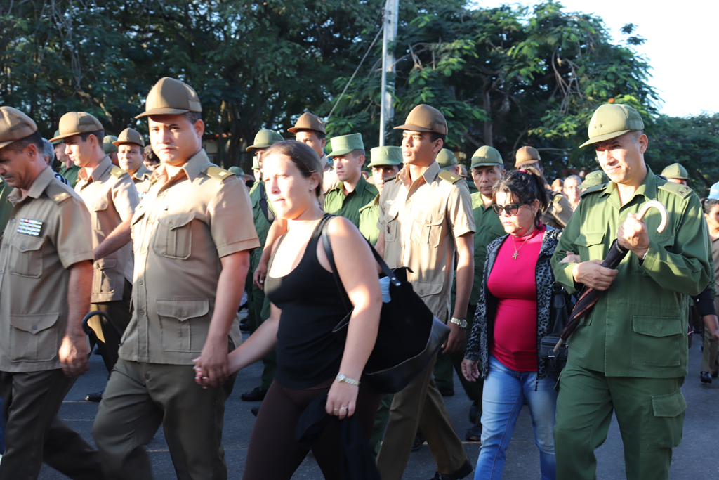 La bandera cubana en manos de jóvenes estudiantes, encabezó el recorrido. Allí estaban, detrás de ella, militares, universitarios, médicos, profesionales, trabajadores, gente de pueblo que cada año se suma a la marcha con la historia.