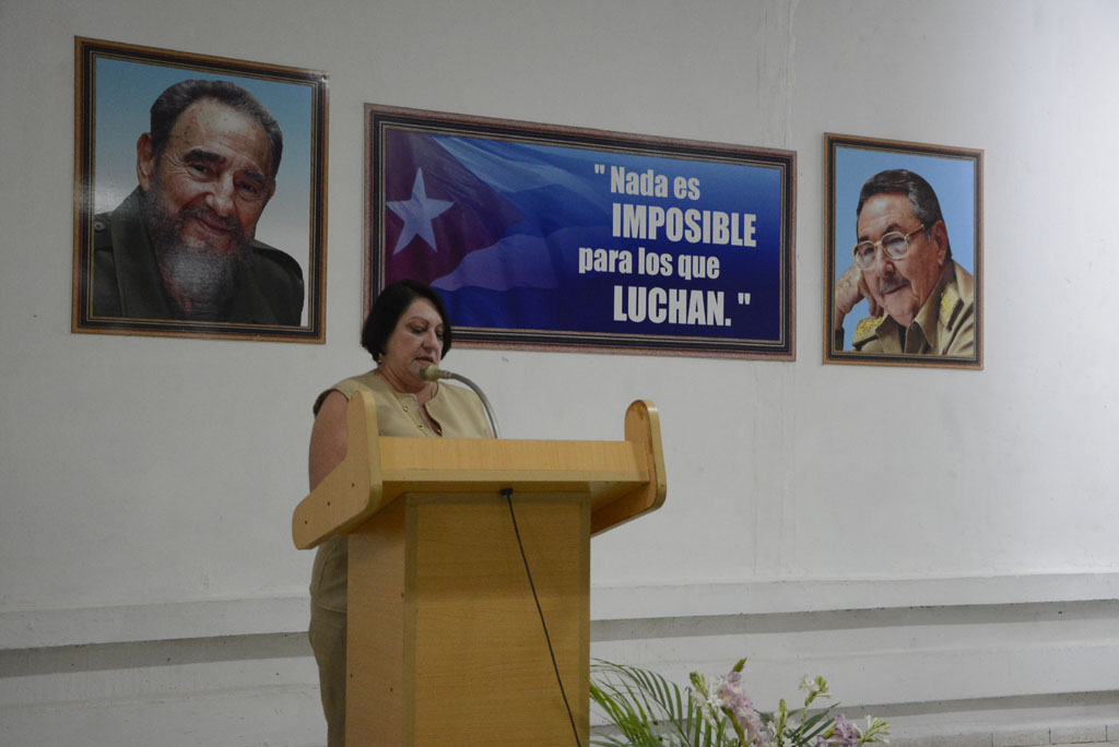 La Dr. C. Isabel Cristina Torres Torres, Rectora de la Universidad de Holguín, pronuncia las palabras centrales en el acto de apertura de la edición 22 de los Diplomados de Administración pública y Dirección y gestión empresarial, efectuado en la Escuela del Partido en Holguín, el 21 de enero de 2019. UHo FOTO/Luis Ernesto Ruiz Martínez.