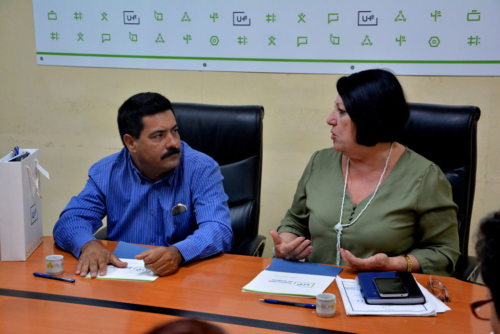 Pavel Rodríguez, director del Centro, e Isabel Cristina Torres Torres, rectora de la UHo, rubricaron el documento oficial que establece el intercambio entre ambas instituciones en diferentes áreas de interés común.