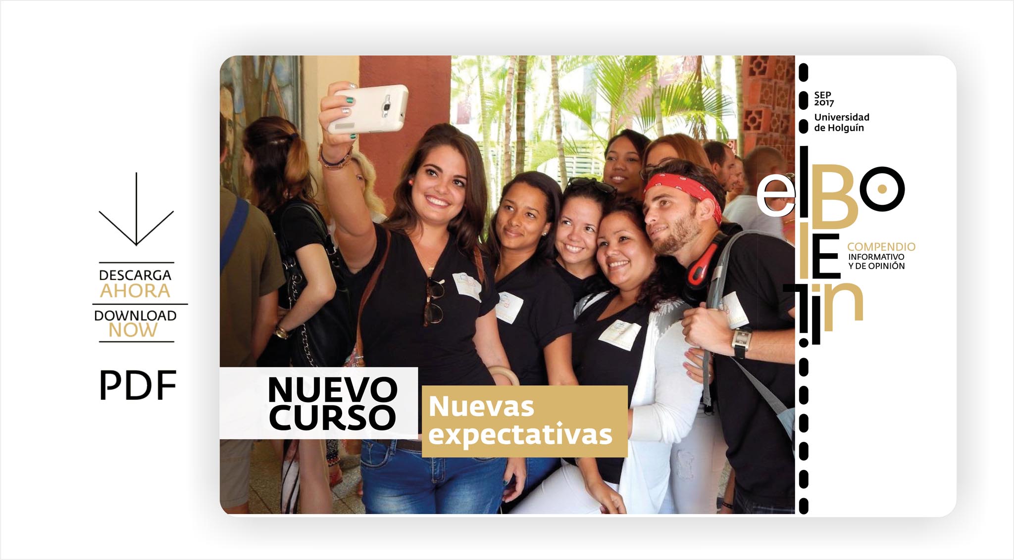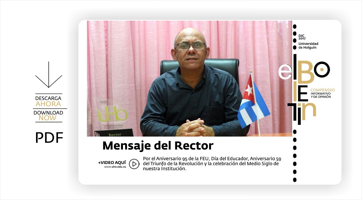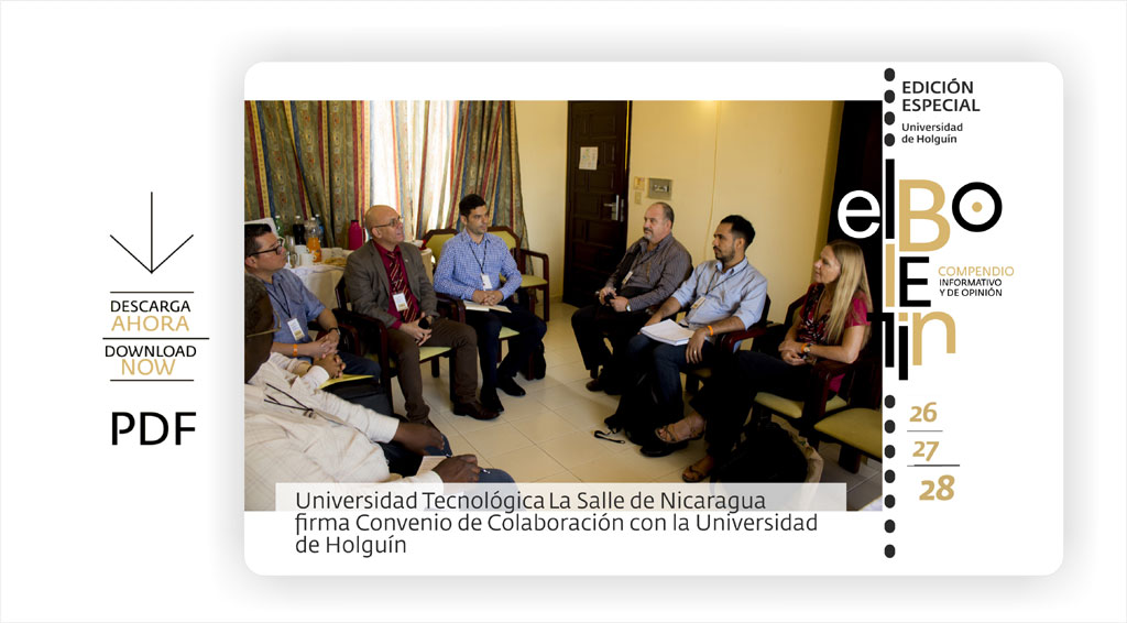 El soporte electrónico que le conecta a las principales noticias y contenidos online de la Universidad de Holguín comienza a circular en formato pdf a través de las páginas web y redes sociales de la Institución. Cada dos meses editamos una versión especial con impresión de alta calidad para públicos y acciones protocolares.