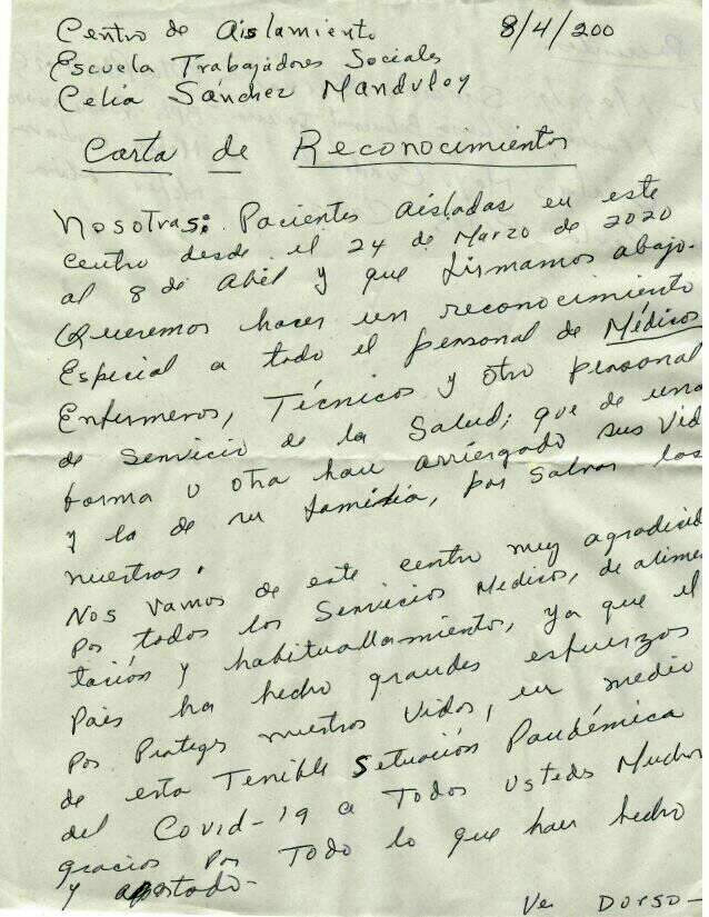Las personas aisladas, en su gran mayoría, se despiden con palabras de agradecimiento. Saben que, en cada gesto, en cada decisión tomada en esos 14 días días, está la disposición del país para preservar su vida y la de sus familiares. Del agradecimiento de muchos ha quedado constancia gráfica, otros aunque prefirieron el anonimato, manifestaron su gratitud.