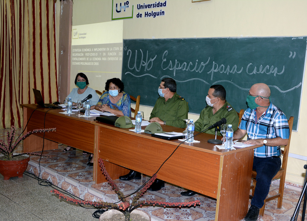 Las medidas diseñadas para la adecuación en la institución de la estrategia económica a implementar en la etapa de recuperación POST COVID-19 y en función del fortalecimiento de la economía para enfrentar un período de crisis, fueron explicadas por la Dr. C. Isabel Cristina Torres Torres, Rectora de la UHo.