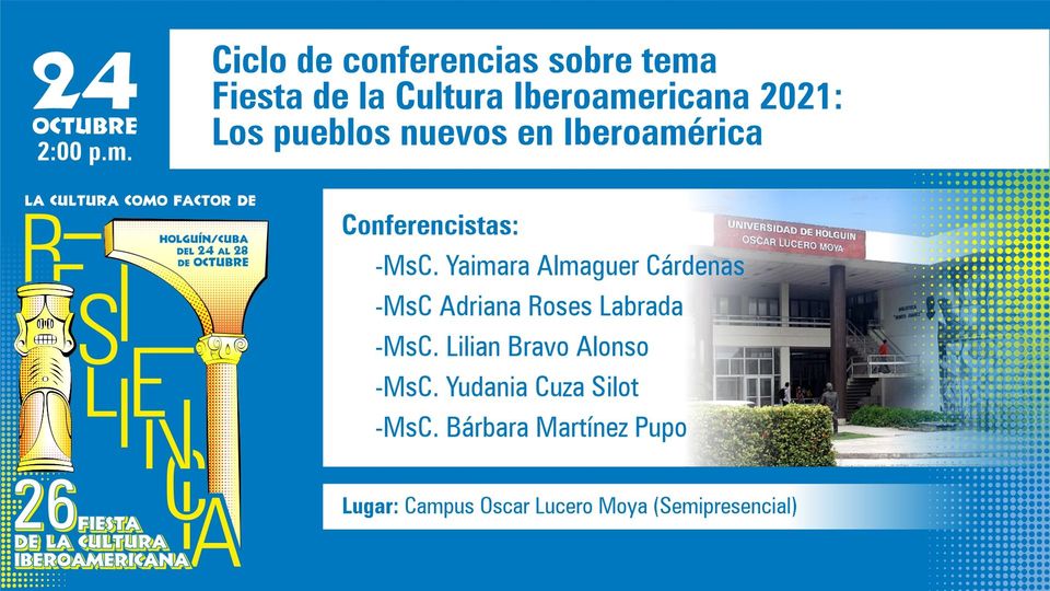 “La cultura como factor de resiliencia es el tema central que moverá la 26ta. Fiesta de la Cultura Iberoamericana, la cual tendrá lugar del 24 al 28 de octubre en la ciudad de Holguín. Compartimos con nuestros lectores las actividades de esta edición, que se desarrollará de manera online.