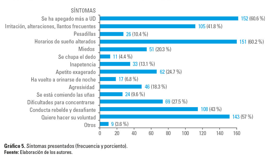 como expresiones de las crisis evolutivas características de estos momentos del desarrollo infantil, que pueden haberse mostrado acentuadas, en mayor o menor medida, en dependencia del manejo familiar en este contexto. - Expresiones de malestar subjetivo, con conductas que no indican afectación psicológica severa. Las niño/as en lo fundamental logran preservar el equilibro psicológico, conservando la integridad de los procesos básicos del desarrollo. Es posible hablar, en general de la presencia de un estilo de afrontamiento sano y una buena respuesta adaptativa.