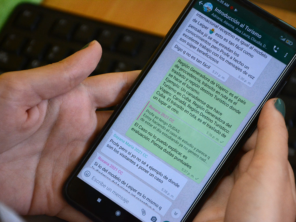 No muy diferente ha sido para los estudiantes. A pesar de que les cuesta dinero, generalmente prefieren usar más el whatsapp para comunicarse o aclarar dudas, aunque para ellos es innegable el valor de la interacción física alumno-profesor. Sin embargo, no todos tienen la posibilidad de interactuar por esta aplicación o las plataformas, tampoco hacerlo en horarios programados, pues depende de la velocidad de conexión de su lugar de residencia y las facilidades tecnológicas. Osmany Jesús Rodríguez Figueredo y Lorena Rodríguez Ricardo, estudiantes de tercer y cuarto años de Economía, residentes en el municipio de Holguín, comentan que para las materias complejas ellos reciben la explicación del profesor y la transmiten al resto del grupo. Subrayan que es un proceso al que hay que adaptarse, y con una organización del tiempo, siempre que se tenga los materiales de estudio a mano, es posible y positivo.