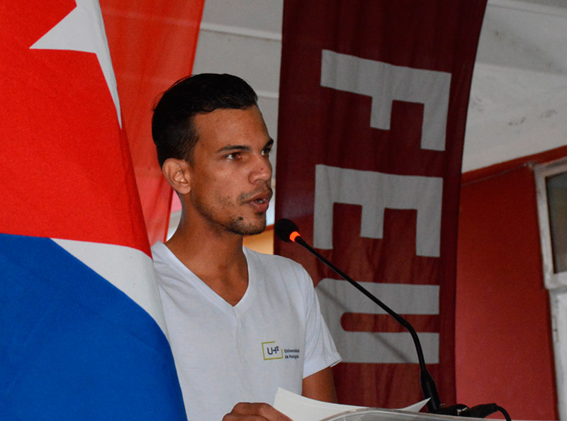 Glesler Vladimir Ramos, miembro del Comité de la UJC de la Universidad, se refirió al importante papel de los universitarios en el contexto de la COVID-19, a su presencia en hospitales, centros de aislamiento, organización de colas, su labor como mensajeros para ayudar a personas vulnerables, su apoyo en labores productivas en huertos y organopónicos, al reto de iniciar el curso escolar en estas circunstancias… elementos que llevaron a que se le otorgara la condición “Jóvenes por la Vida” al centro de altos estudios en el territorio. Varios recibieron hoy allí el carné que los acredita como militantes de la organización juvenil.