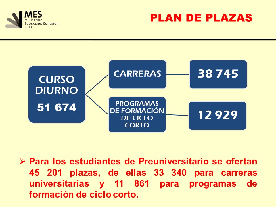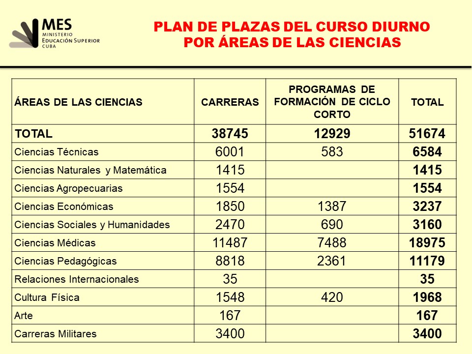 Sánchez Díaz comentó que “fue un año en el que, por las medidas que aplicamos, tuvimos experiencias positivas, porque se otorgaron más plazas para la educación superior que en ningún año de la última década precedente. En total, fueron otorgadas 87 000 plazas, 20 000 más que en el curso anterior.