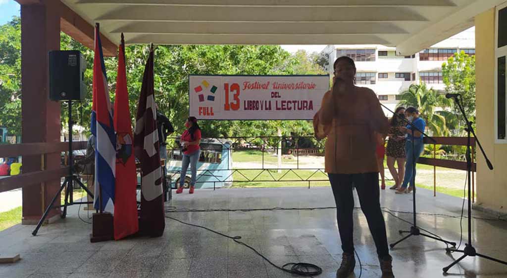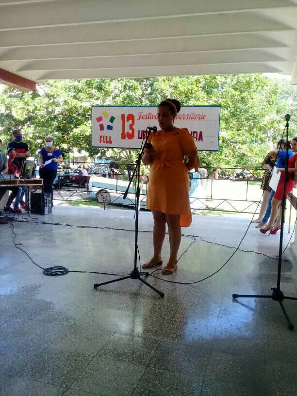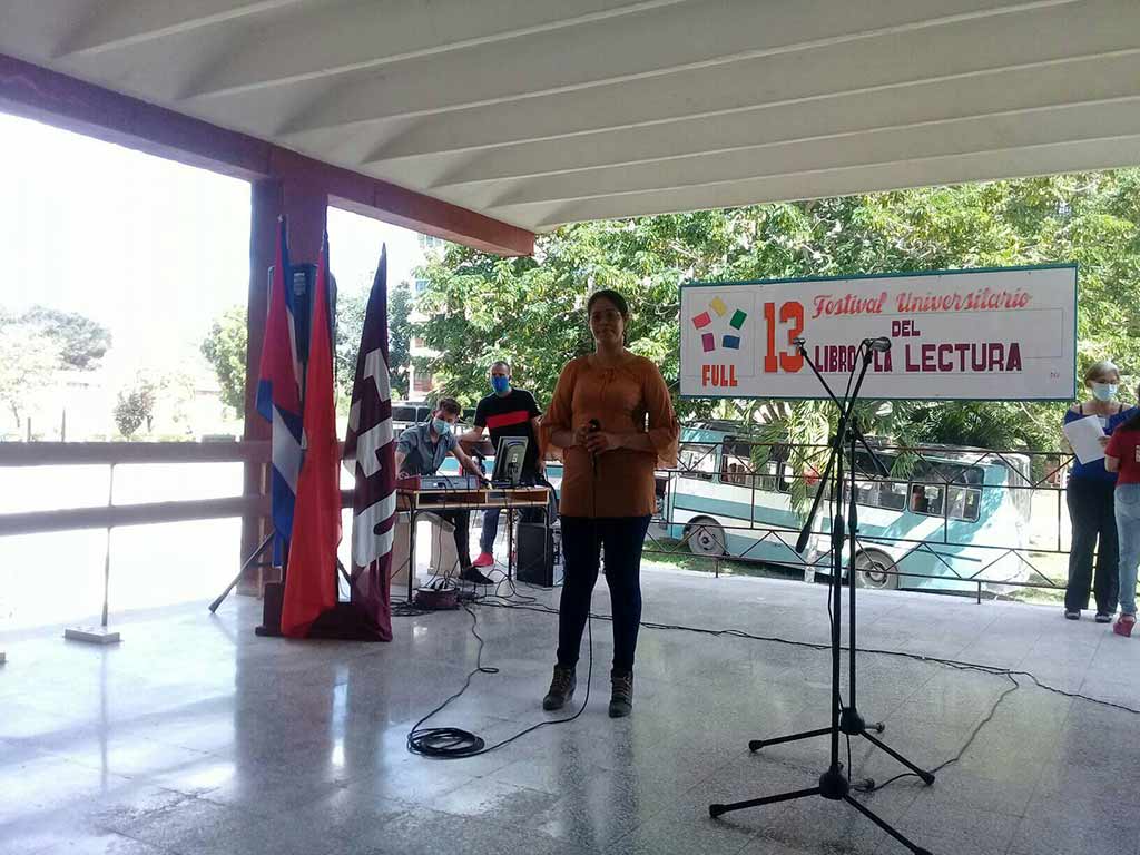 Karem María Valdés Maceo, secretaria de cultura de la Universidad de Holguín, presentó las actividades que se han organizado en la comunidad universitaria e incluyen expo-ventas de libros, presentaciones e intercambios con escritores holguineros.