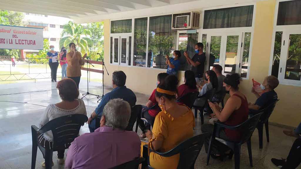 Por su parte, Liset Adela Prego Díaz, periodista, escritora y jefa de la Sección de Literatura de la AHS en Holguín, egresada de esta universidad, anunció las bases del concurso Leer a la Patria, convocado por la casa promotor del libro y la FEU.