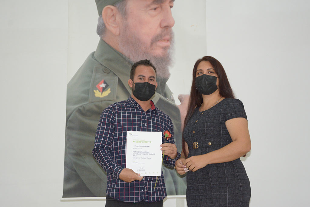Mención estudiante investigador en la CategoríaCiencias de la Cultura Física: Manuel Pérez Almenares.