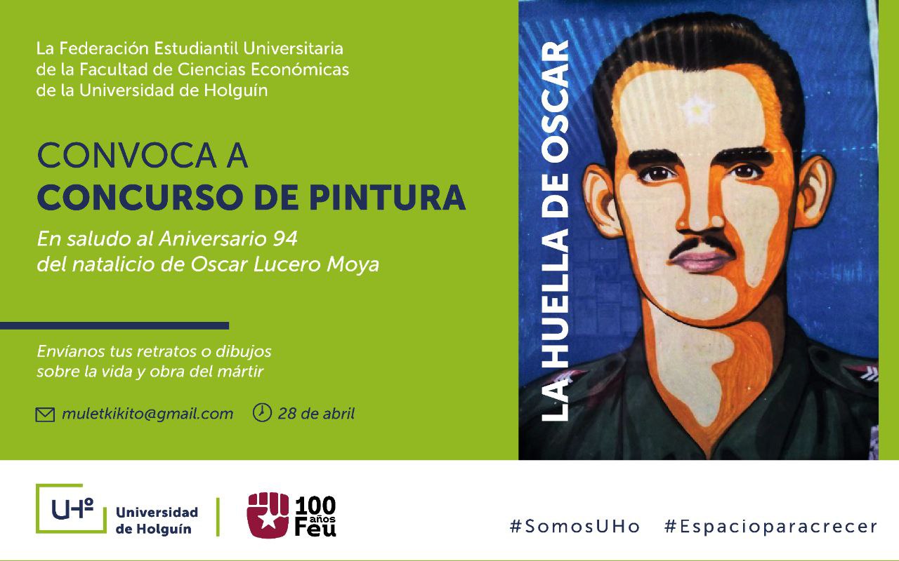 Los universitarios holguineros dedicarán una jornada de homenaje a Oscar Lucero Moya, que se extenderá desde el 25 de abril hasta el 18 de mayo, fecha asumida por su desaparición física. Estas actividades han sido organizadas por la Cátedra Honorífica que ostenta el nombre del mártir y por la FEU de la Universidad de Holguín.