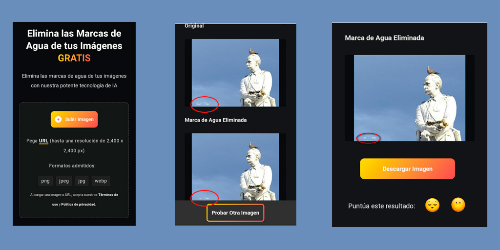 Esta plataforma ofrece varias herramientas, yo solo utilicé la de quitar marcas de agua. Su manejo es sencillo e intuitivo. Solo tienes que pinchar en los botones, subir tu foto y esperar unos segundos para luego descargarla. En esta ocasión, ya te muestro el resultado: no fue el deseado.