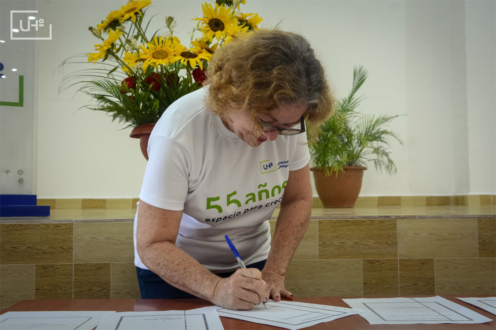 Seamos herederos de lo más puro de la tradición ética de nuestro país, demostremos con nuestro accionar diario, que este documento que firmamos es guía y compromiso, afirmó la Dr. C. Aniuska Ortiz Pérez, rectora de la Universidad de Holguín, antes de proceder a firmar junto al resto de los cuadros de la institución.